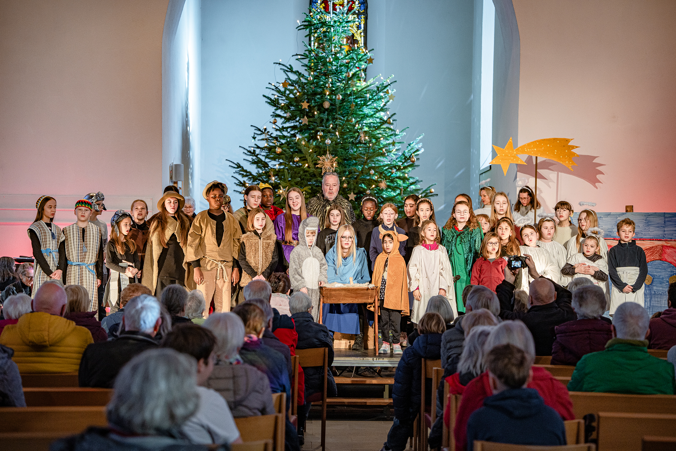 Text von psi: Am 4. Adventswochenende wurde in der Reinacher Kirche «D’Zäller Wienacht», das berühmte musikalische Krippenspiel des Schweizer Komponisten Paul Burkhard (1911-1977), zweimal aufgeführt. Die zweite Aufführung fiel genau auf den 114. Geburtstag des Komponisten. Der zahlreiche Publikumsaufmarsch, die Kirche war zweimal bis auf den letzten Platz besetzt, zeigte, wie beliebt dieses Krippenspiel oder «Kinder-Oratorium» auch 65 Jahre nach seiner Uraufführung in Zell im Tösstal heute noch ist.